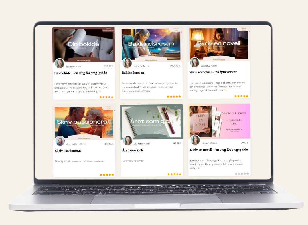 Det finns kurser för nybörjare såväl som vana skrivare. Det finns kurser för dig som helst lär dig själv när det passar dig, såväl för dig som hellre vill träffas och lära dig tillsammans med andra.